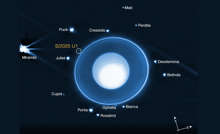 আমাদের সৌরজগতের বিভিন্ন গ্রহের চাঁদের সংখ্যা বিভিন্ন; সবচেয়ে বড়, বৃহস্পতির আছে ৯৫টি, শনির আছে ২৭৪টি, পৃথিবীর আছে একটি মাত্র উপগ্রহ। আবার বুধ বা শুক্রের কোনো উপগ্রহ নেই। সম্প্রতি, বিজ্ঞানীরা S/2025U1 নামক ইউরেনাসের নতুন এক চাঁদের সন্ধান পেয়েছেন, যার ব্যাস মাত্র ১০ কিলোমিটার। আকারে ক্ষুদ্র হওয়ায় এতদিন নজরে পড়ছিল না জ্যোতির্বিদদের। জেমস ওয়েব স্পেস টেলিস্কোপের ইনফ্রারেড ক্যামেরায় গত ২ ফেব্রুয়ারি এই চাঁদটির সন্ধান মেলে। বর্তমানে, ইউরেনাসের মোট উপগ্রহ ২৯ টি। ইউরেনাসের চারপাশে ১৩টি রিং আছে, বিজ্ঞানীদের ধারণা এগুলোর আড়ালেই আরো চাঁদ লুকিয়ে আছে। সুতরাং বরফ শীতল এই গ্রহের মোট কটি চাঁদ আছে, তার জন্য আমাদেরকে আরো অপেক্ষা করতে হবে।